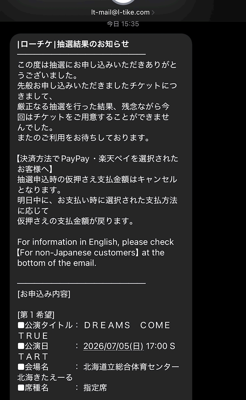 そういえばドリのライブ外れた😭