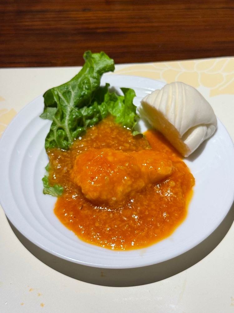 エビチリともちもちしたパン🍞