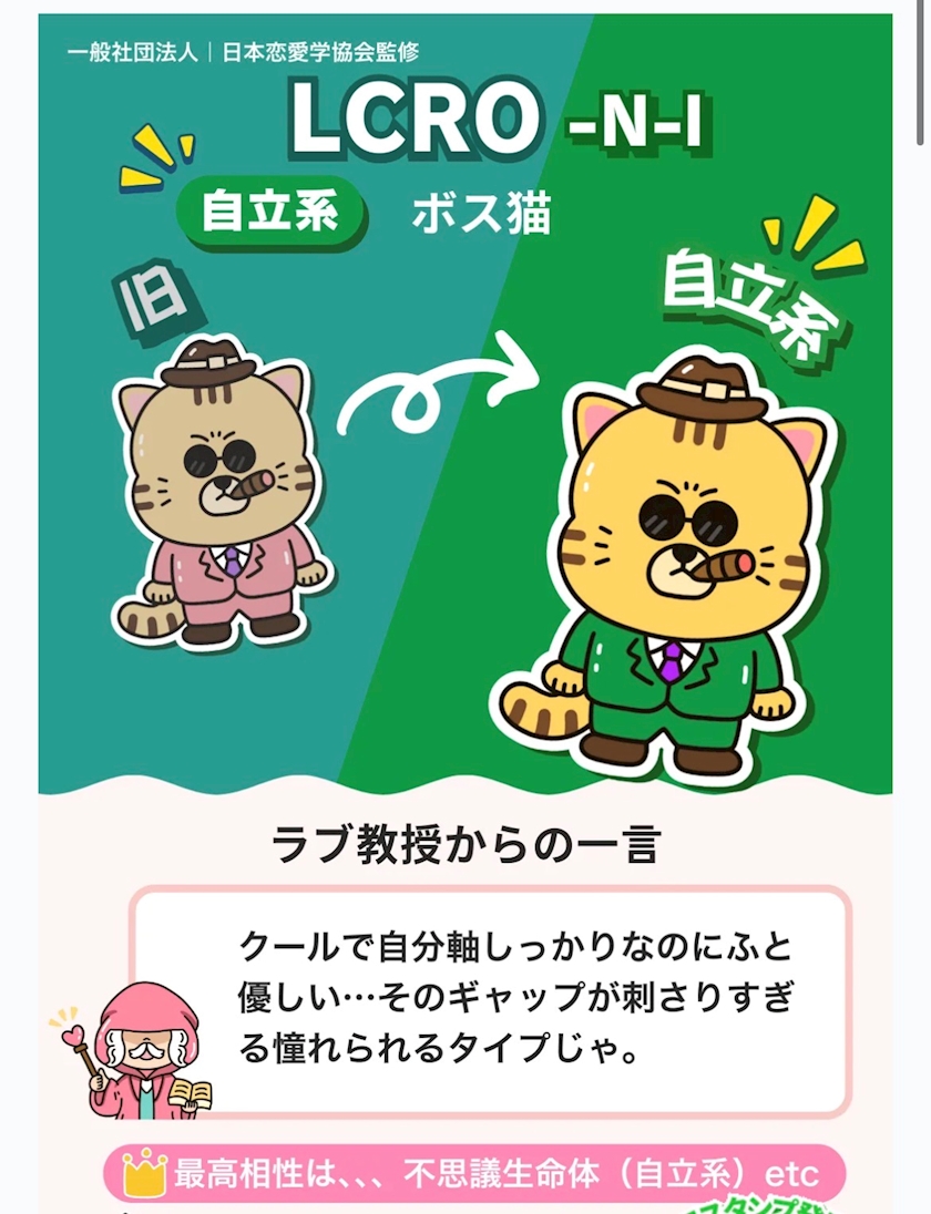 友達が恋愛mbti変わってた〜って言ってたからひさしぶりに再診断したら私も変わってた