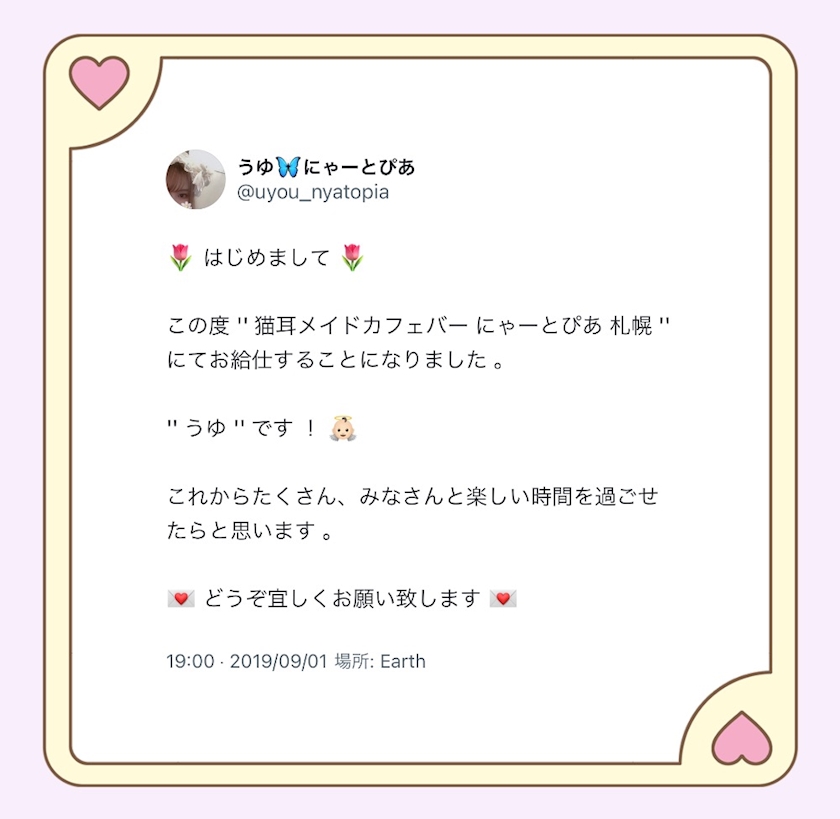 本当ににゃーとぴあのメイドさんとしてお給仕させていただけることがなによりも幸せで、オープン当初からモチベーションややる気は今も尚右肩上がりで、もちろん、その頃からにゃーとぴあのこともにゃーとぴあの猫ちゃんのこともご主人様お嬢様のことも心から大切でした。