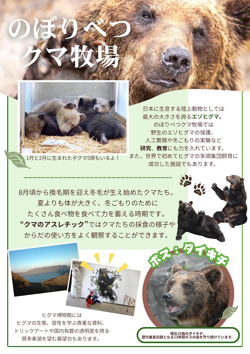 のぼりべつクマ牧場のページです🐻