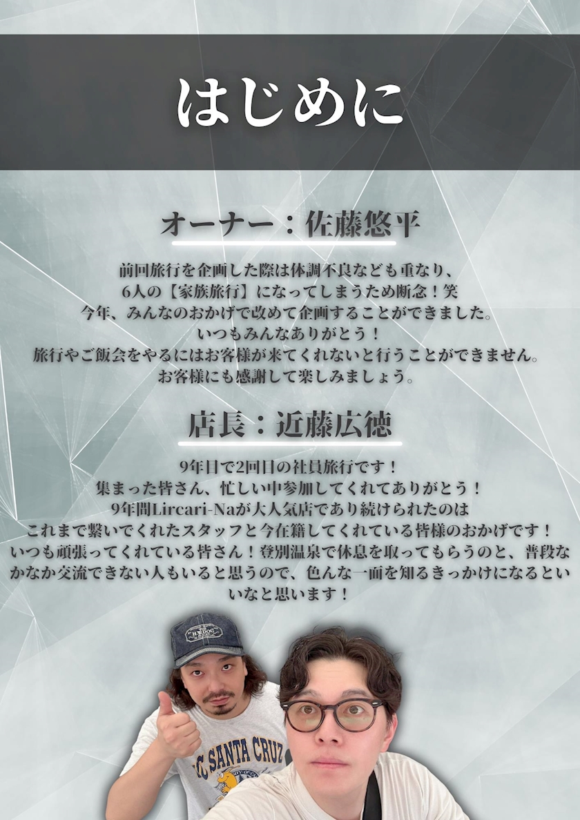 先日のLircari-Na社員旅行のしおりを