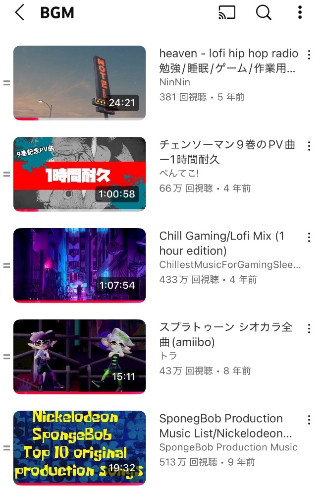 YouTubeのBGM再生リストをふと思い出して開きました