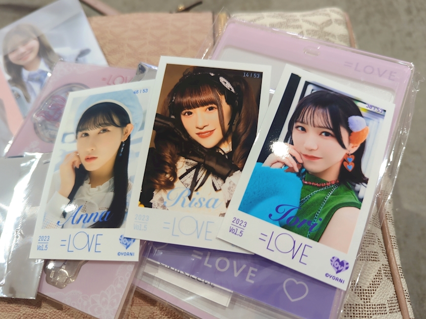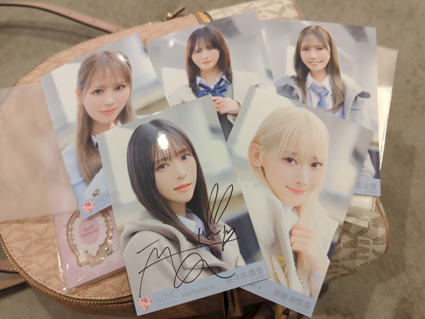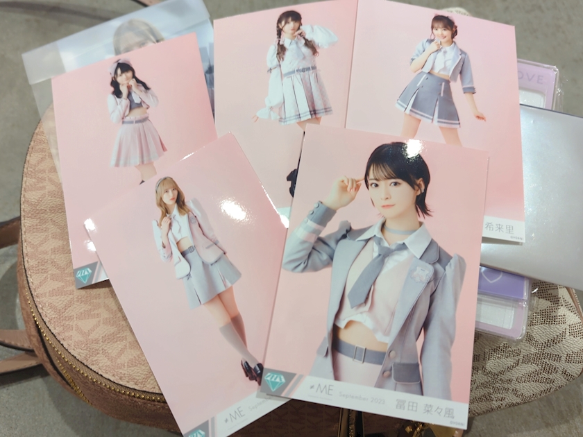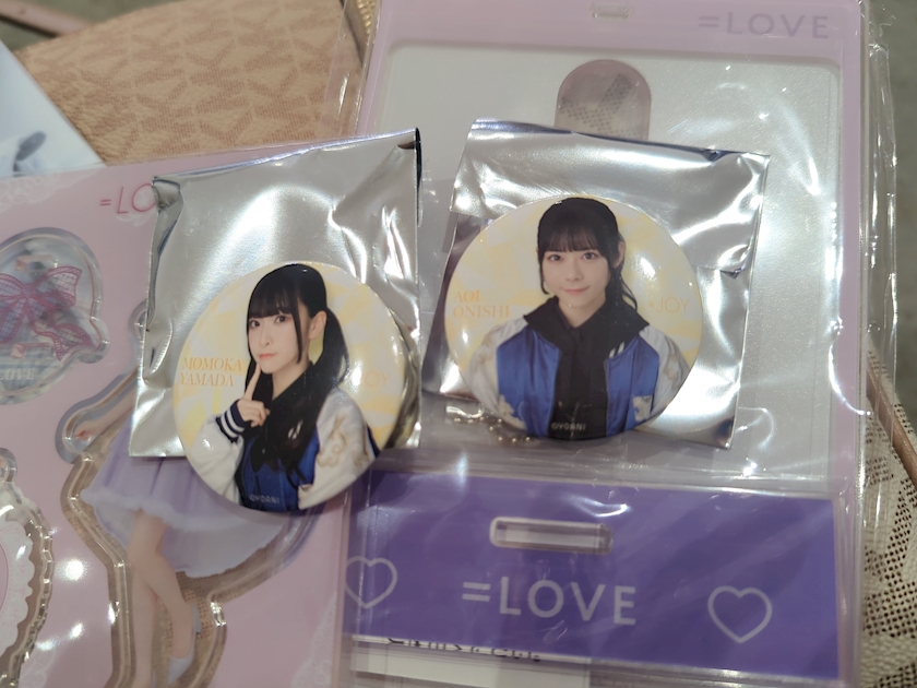 花菜ちゃんの生写真と杏佳ちゃんの缶バッジ、その辺にいたグッズ集めるタイプっぽい推しの人達に声をかけてもらっていただきました