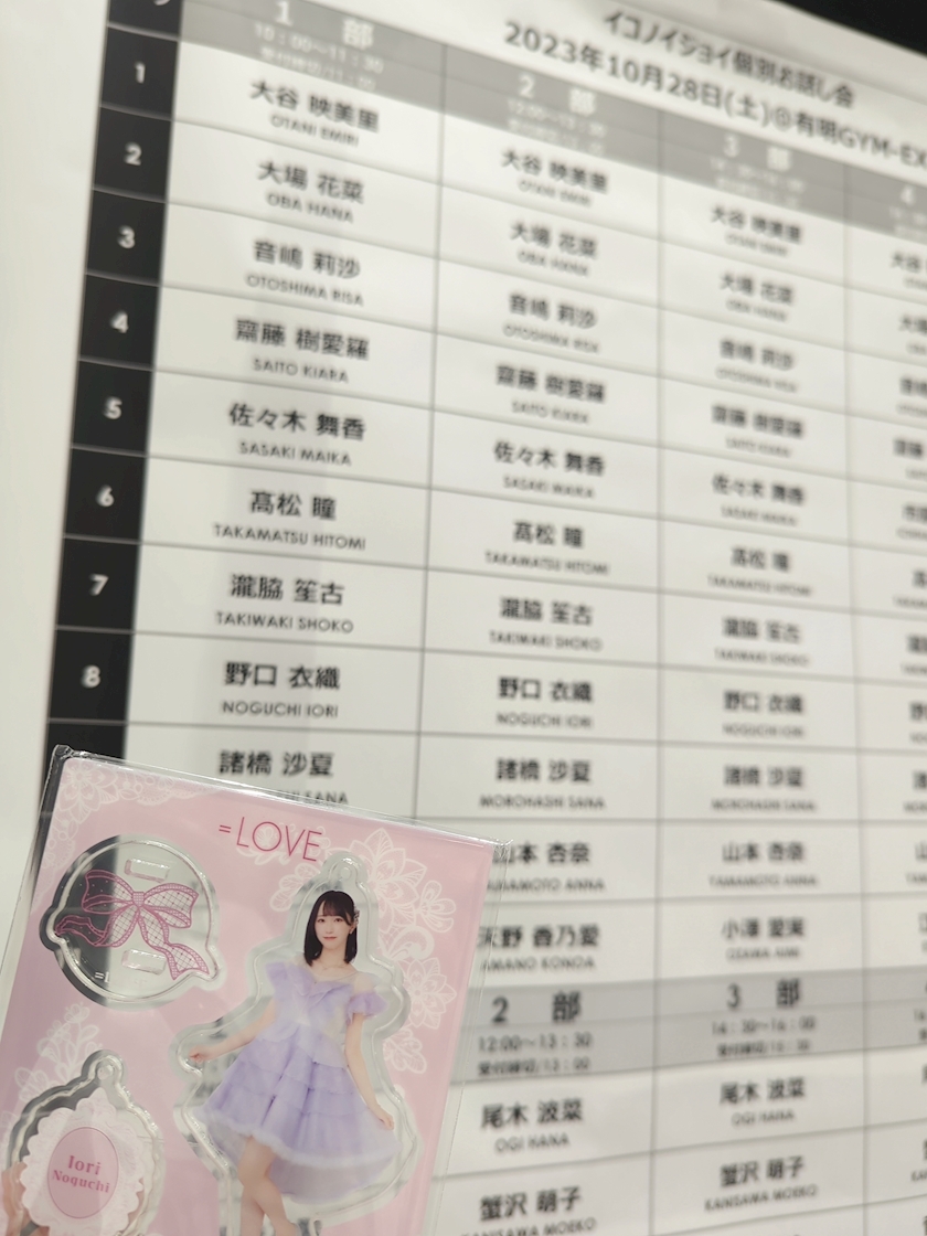 この時間で、2部が終わってはける大場花菜ちゃんがまいんの前にいた大場花菜ちゃん推しの女の子に熱烈ファンサしててほっこりしました