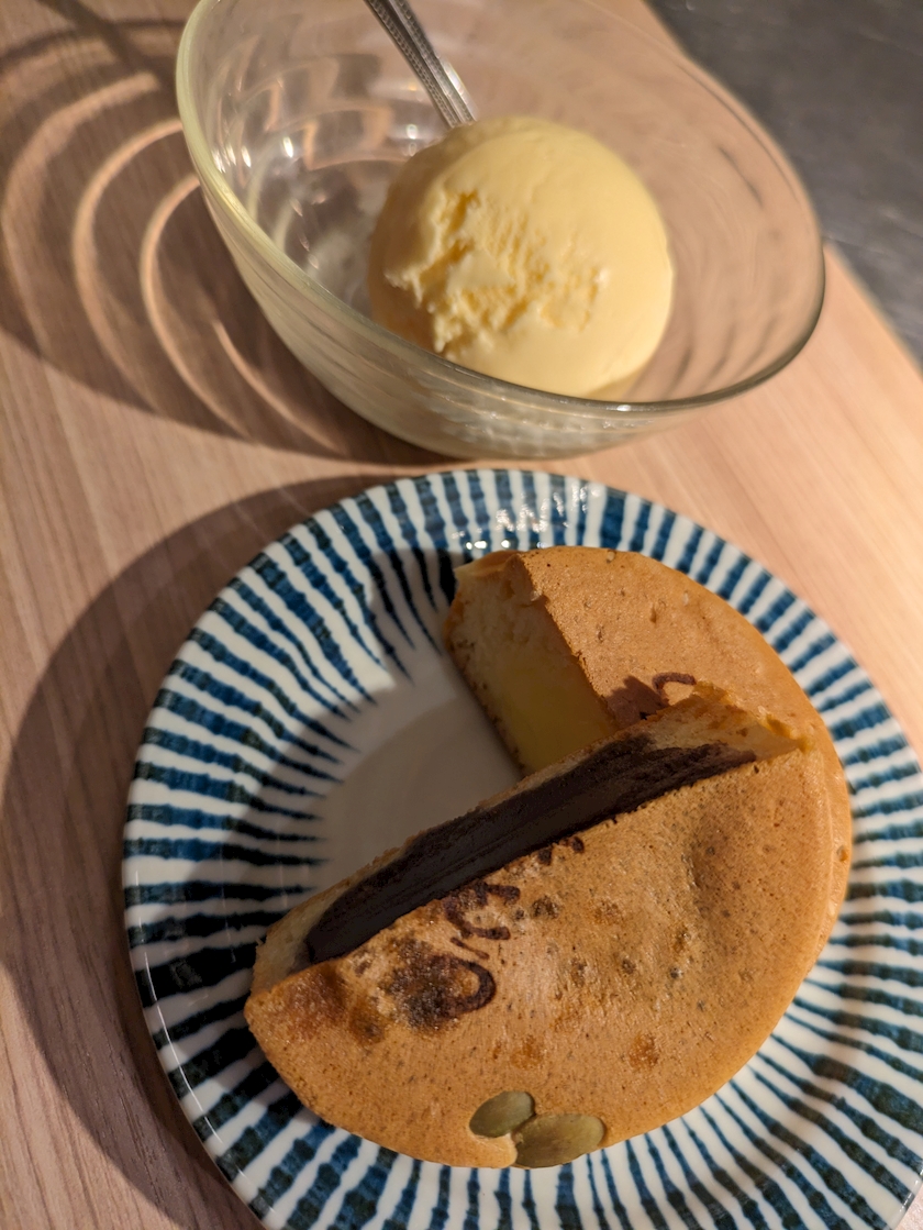 デザートにおやきいただきまして😊😊😊(これはメニューではない)