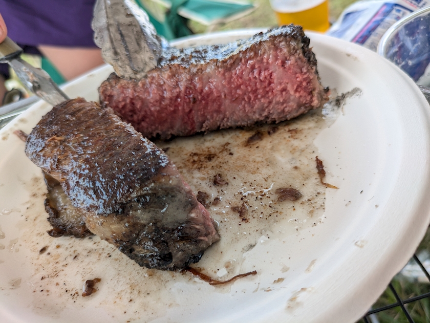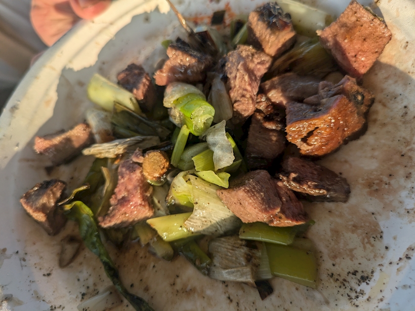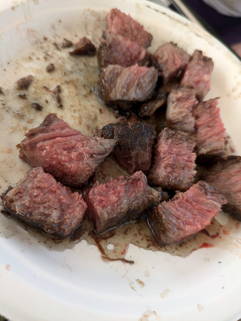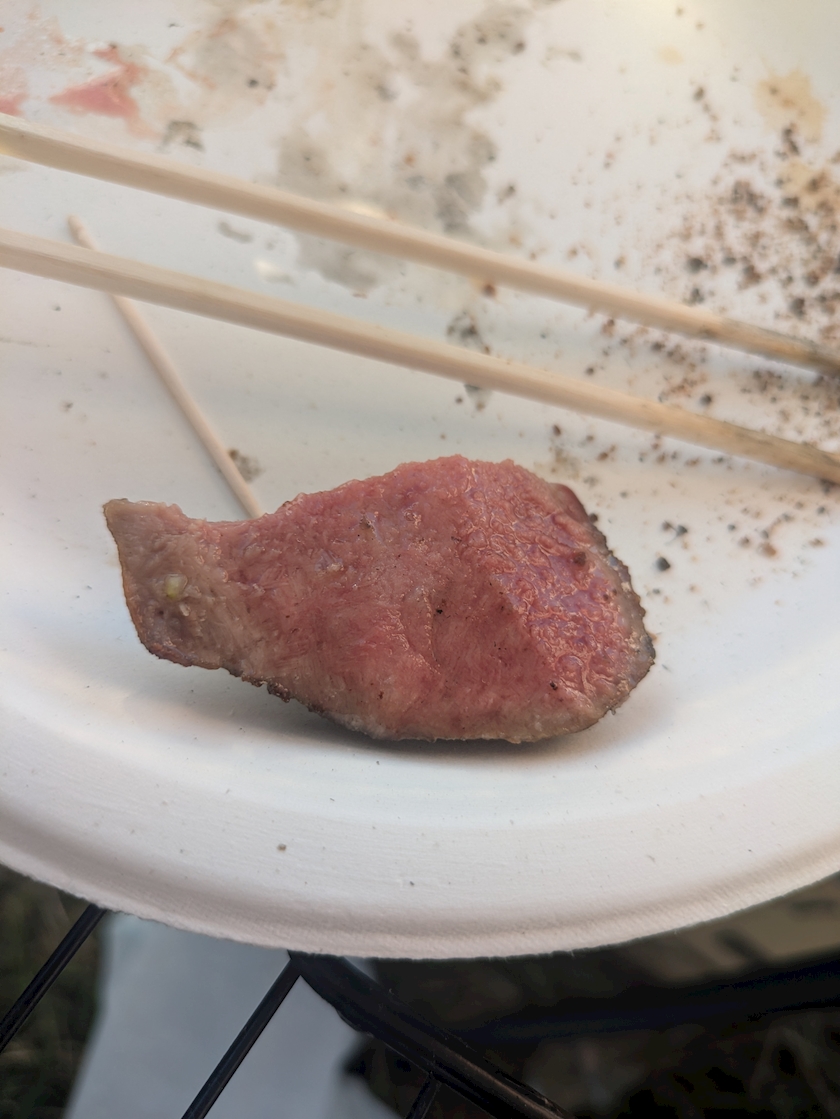 白老牛を、お塩で焼いて、ブラックペッパーをかけてオリーブオイルとお醤油で仕上げるの