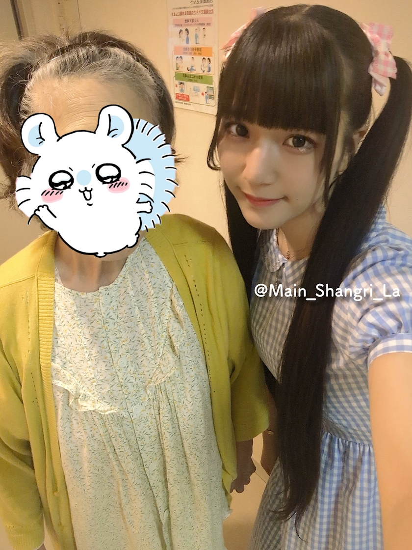 おばあちゃんは「お化粧したらもっと可愛い お人形さんみたい」と言っていました にっこり