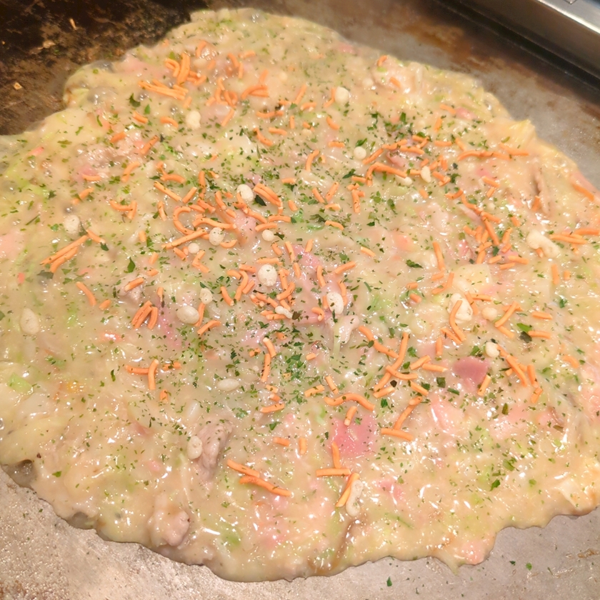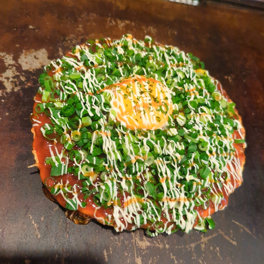 お好み焼き系ってどうしてもソース味でこってりしてしまうので、ここでお醤油味を口に入れるとさっぱりで最高なのです