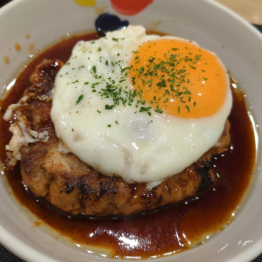 ハンバーグも照り焼きソースなので勿論美味しいたけでした