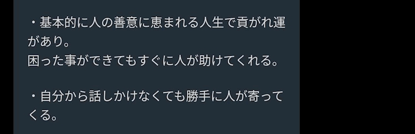 この占い結果なかなか面白いから見たいよって人いたら声かけてね全部見せるよ~❣️