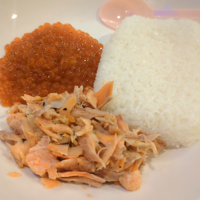 鮭といくら、まいんが味濃いもの好きだからしょっぱめに作ってくれたらしいんだけどこれをちょっと食べたお鶴ちゃんはつらかったらしいです