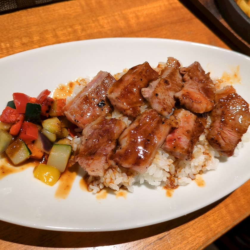 のはずが、なんか想像よりずっとオシャレなの来ちゃって全然ステーキ丼感がないね