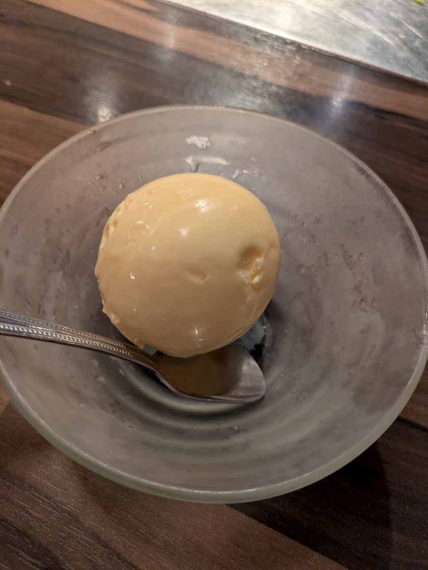 〆にバニラアイスを食べて