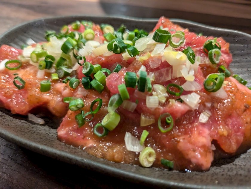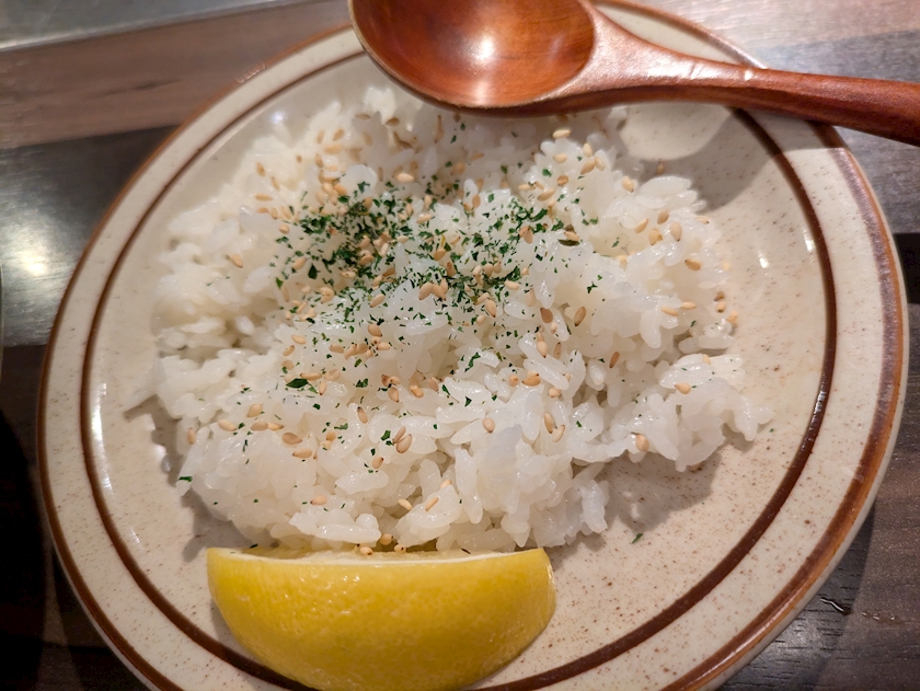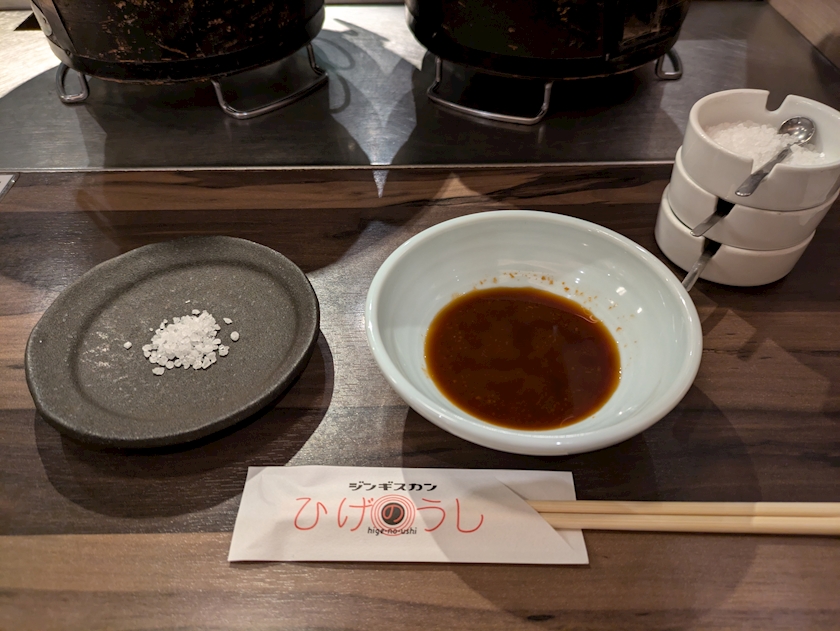 お塩、摩り下ろしニンニク、辛いやつ(食べないのでこれが何かは分からない)がテーブルに置いてあるのでタレを好きにカスタマイズできるよ🤝🏻