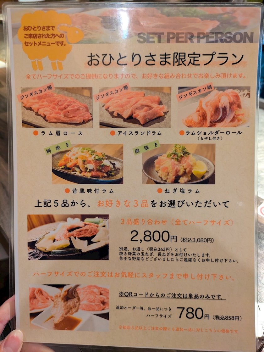 これがおすすめですって見せていただいたおひとりさま限定メニューのプランが