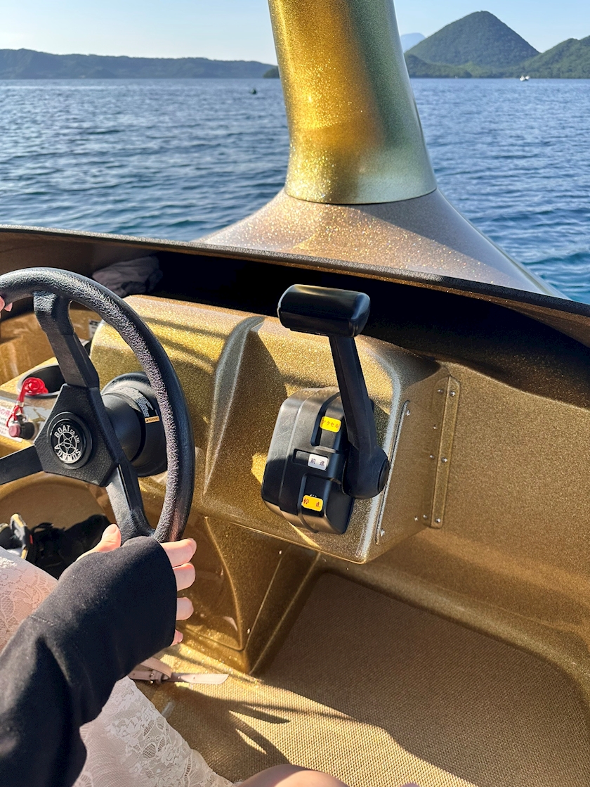 公道でできないことをやってのけるぞという気持ちで蛇足運転したり波を起こしたり(他のボートが近くにいない時)してとっても楽しいたけでした