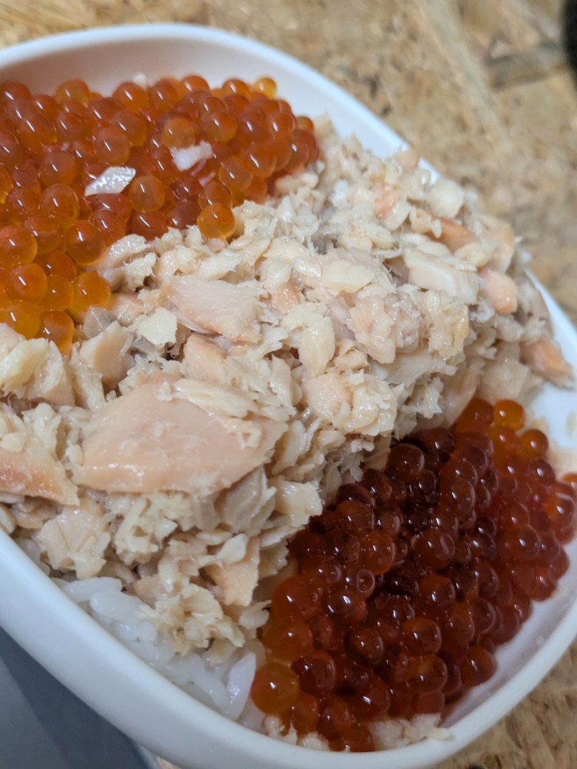 鮭フレークと一緒に食べられるようにっていくらも漬けてきてくれたよ