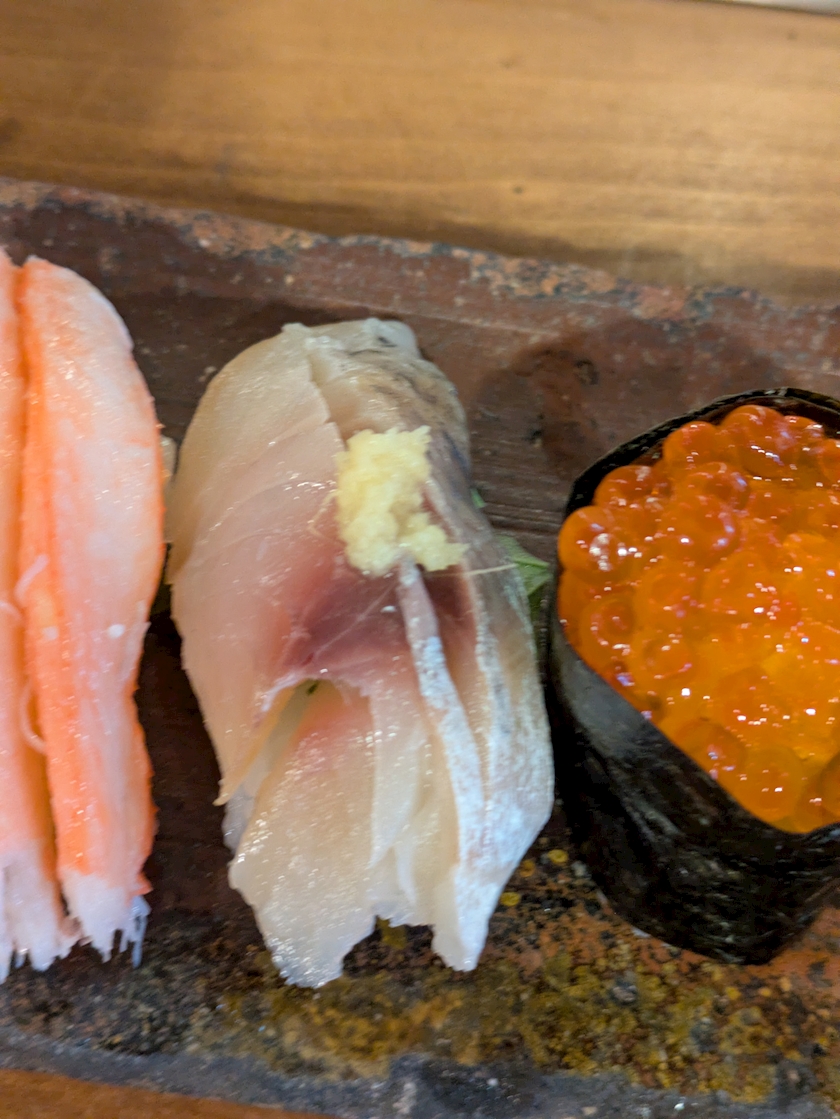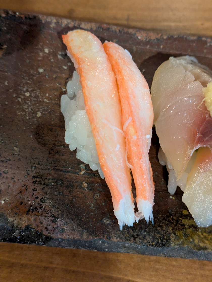 お寿司の蟹自分だと選ばないから、見ることレアでウキウキしちゃう