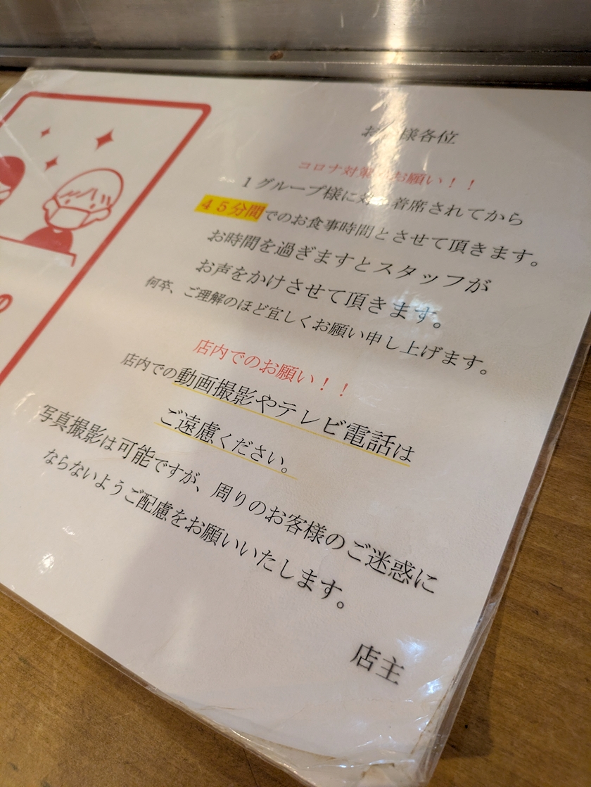 どうやらこのお店はまだコロナ禍中みたいで、カウンターは1席飛ばしでお客様を座らせているよ!!
