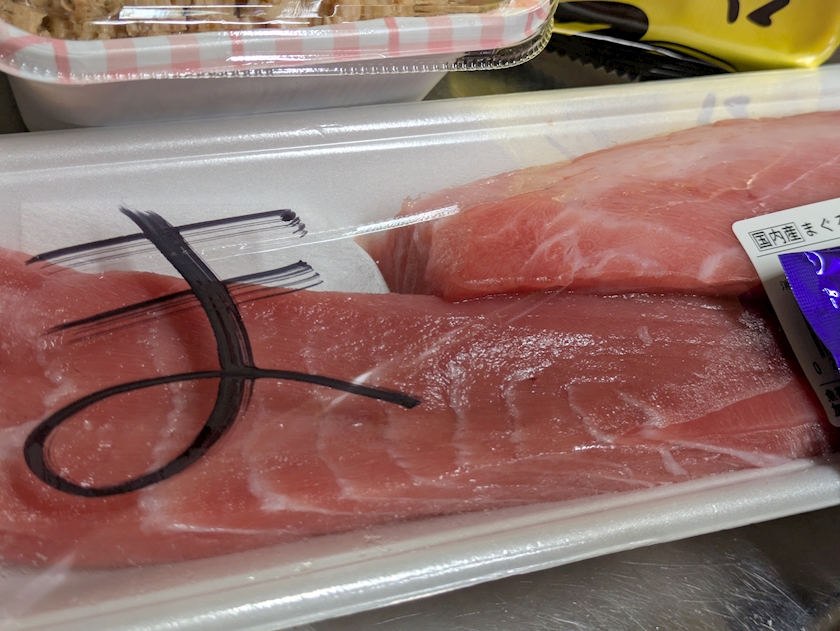 お刺身用というよりはとろろ丼とかそういうの用の鮪らしいたけ😍