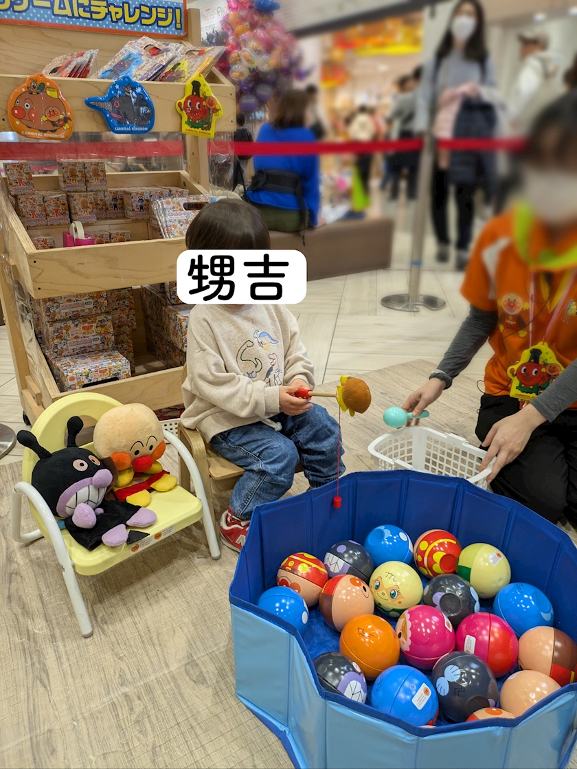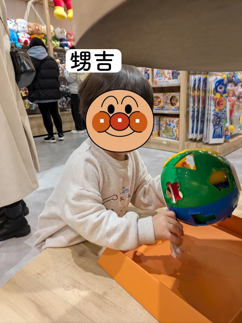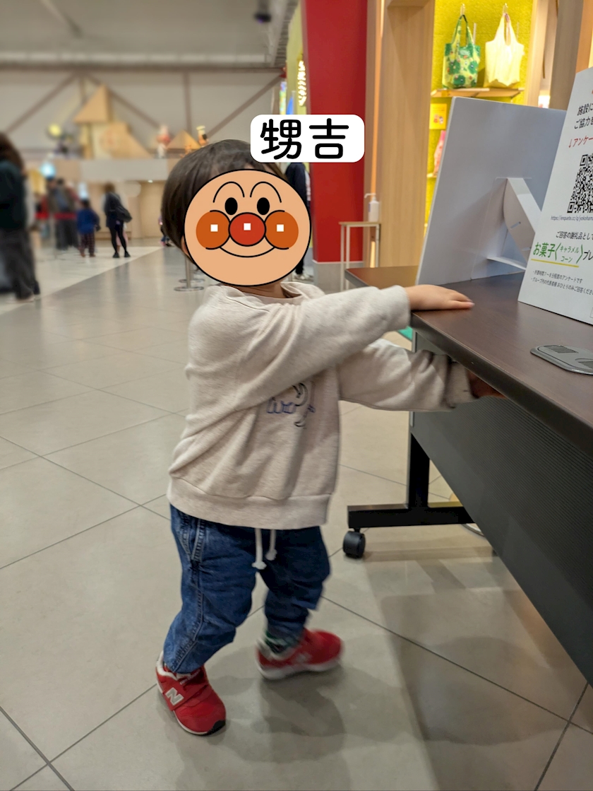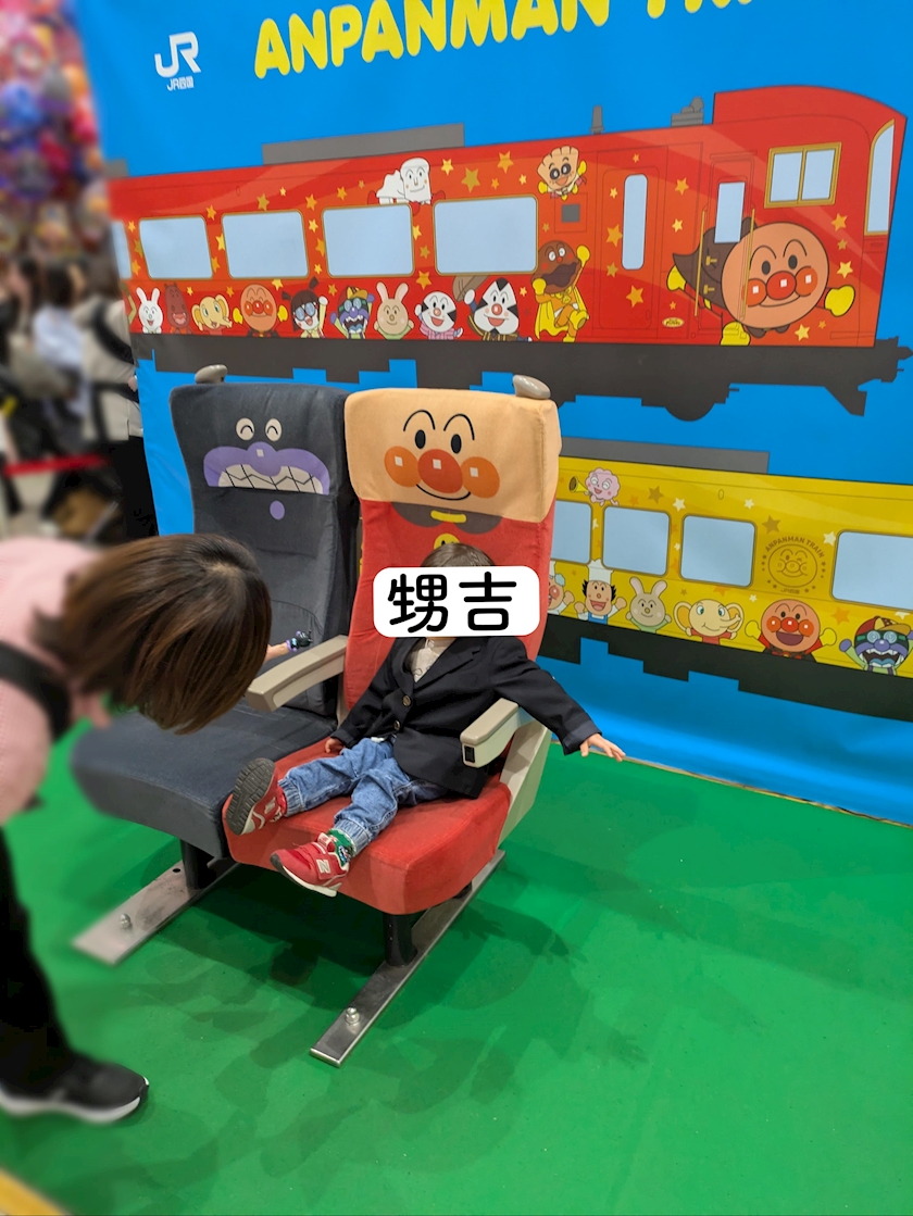 本当はおもちゃが欲しかったみたいでずっとアンパマン号の前で座ってたんですけど