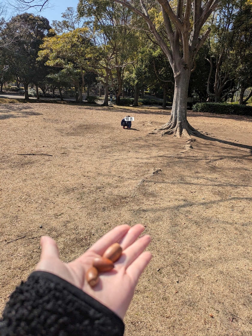 どんぐりを埋めたらいつか大きな木になるんだよここで木になってくれるんだよまた会いに来ようね、と若干本当っぽい嘘みたいなよくわからないことを伝え抱っこで移動させ乗り切りました
