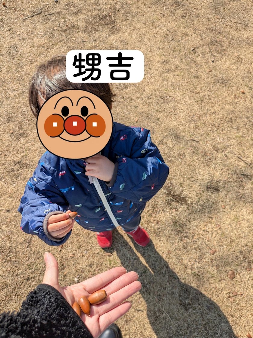 抱っこ中色んな木を指して「これ、どんぐり?」「これ、どんぐり?」「これ、どんぐり?」と永遠に聞いてくるので