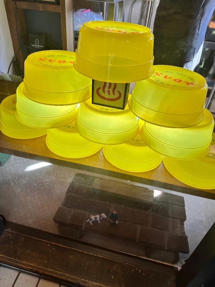 レジ下にケロリンの桶が積んでありました