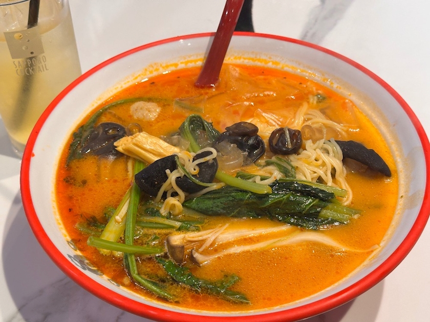 気をつけないとすごい量になるよって聞いてたのでビビりながらいろんな具材を選んで、最後にスープを選んでスタッフさんにバトンタッチしました