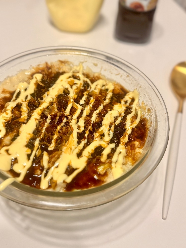 お豆腐で作るレンチンお好み焼き💓