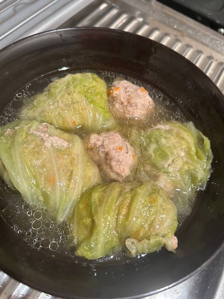 はじめて作ったんだけどキャベツが難しいから肉団子になっちゃったのもある笑