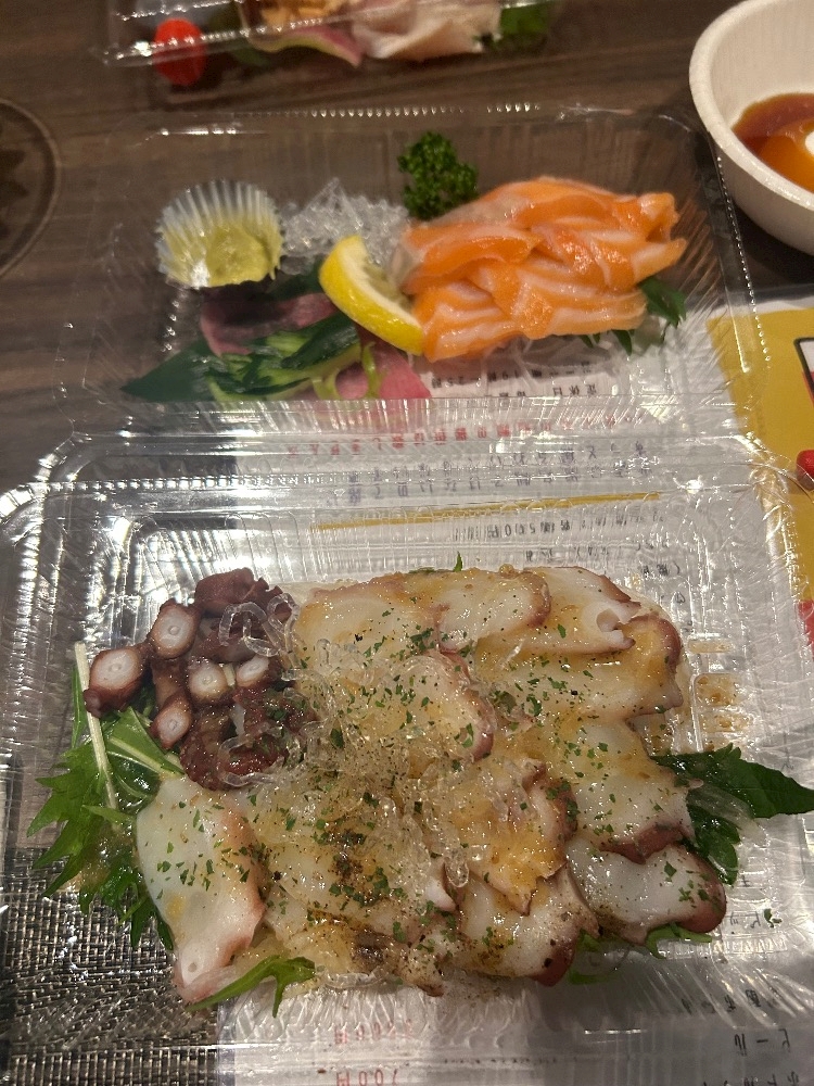 お店で出前頼んだタコのカルパッチョ🐙美味しすぎた🐙