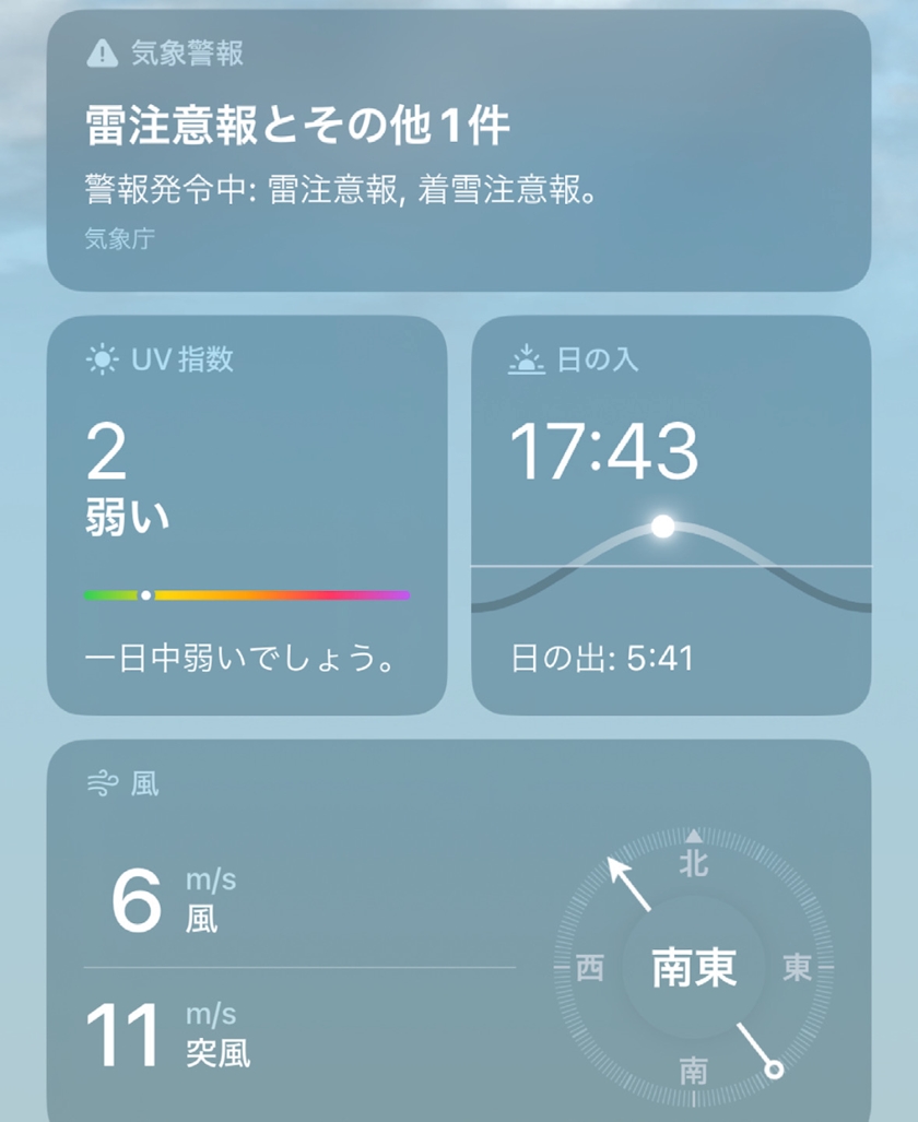 今日の天気みてみたら雷注意報出てる、、、