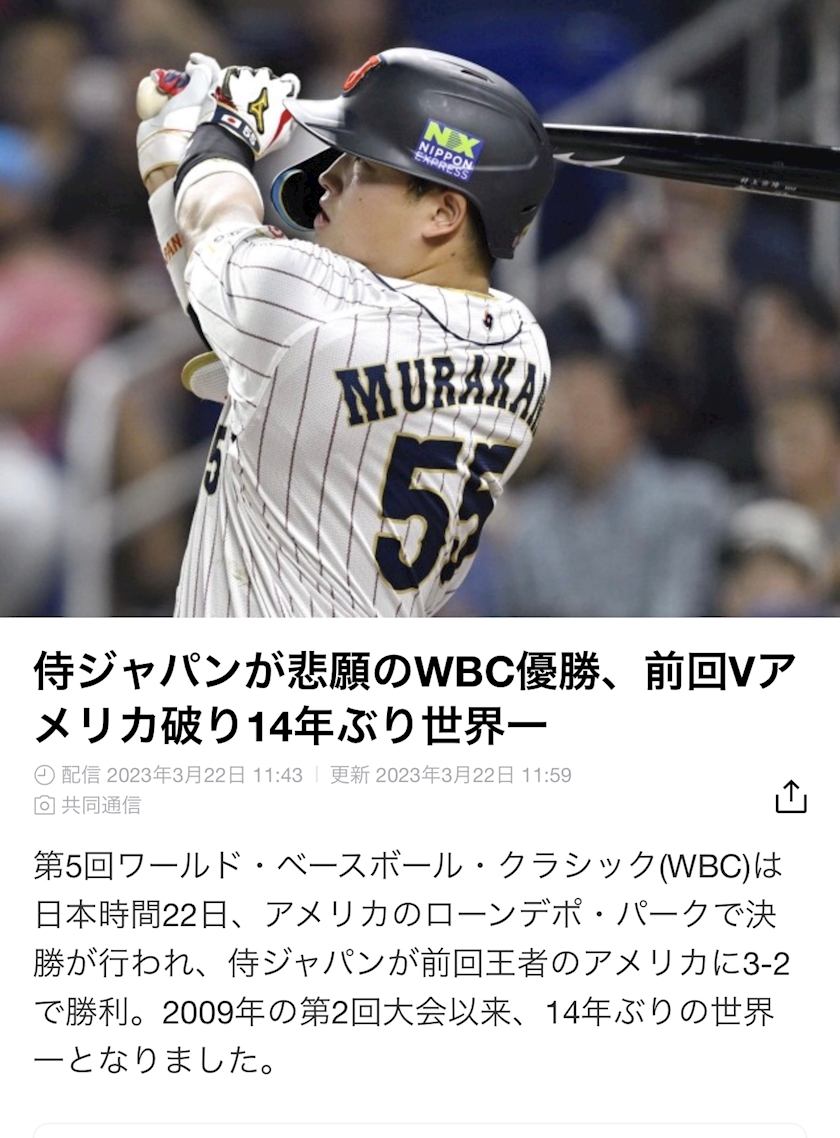 WBCの決勝でしたね⚾️