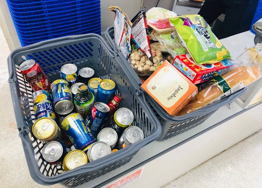 まず、スーパーで買い出し(酒は大量に)