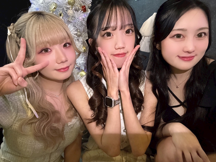 先輩二人に囲まれて嬉しそうな私