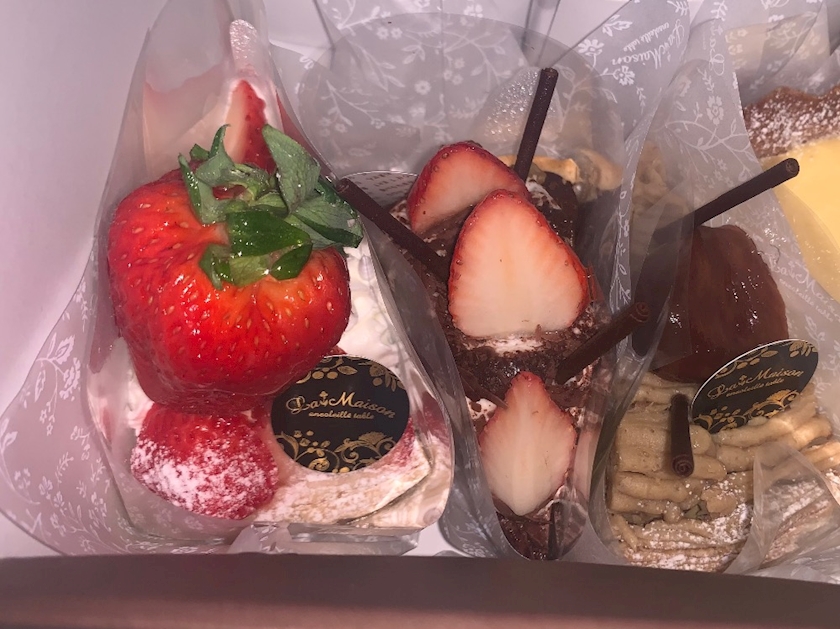 隣のチョコケーキのイチゴも大きいのに、