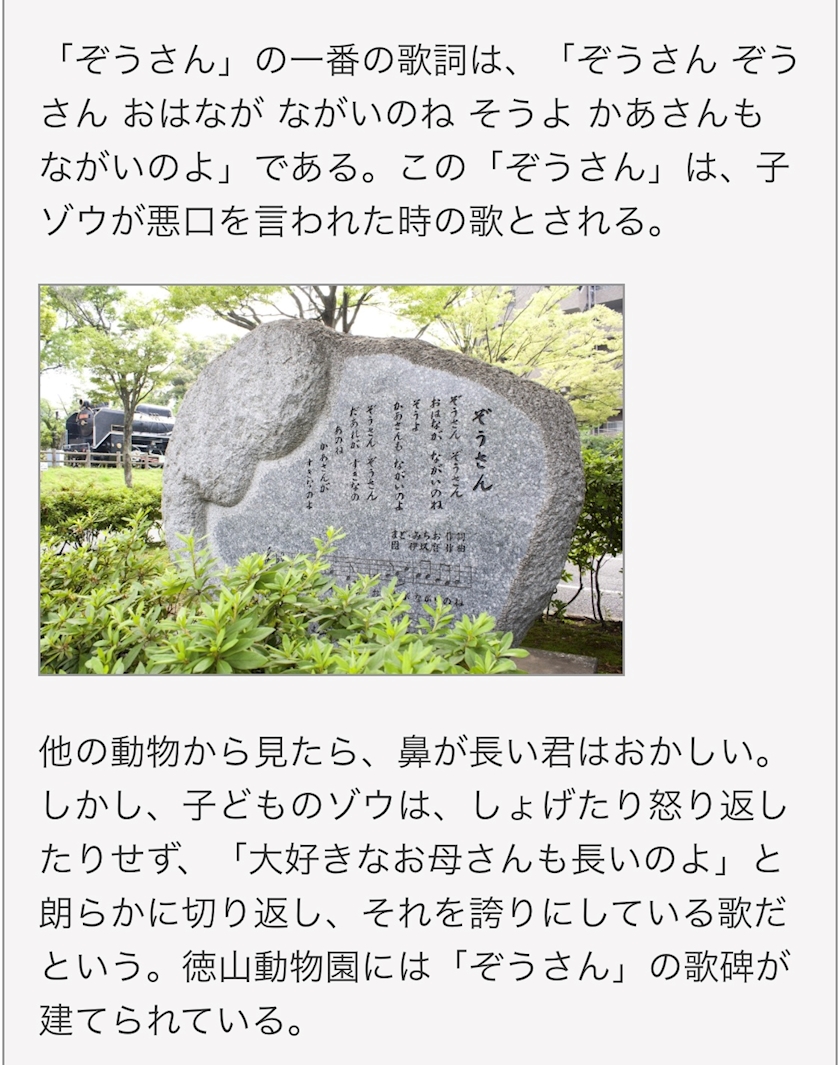 ぞうさんぞうさんお鼻が長いのね