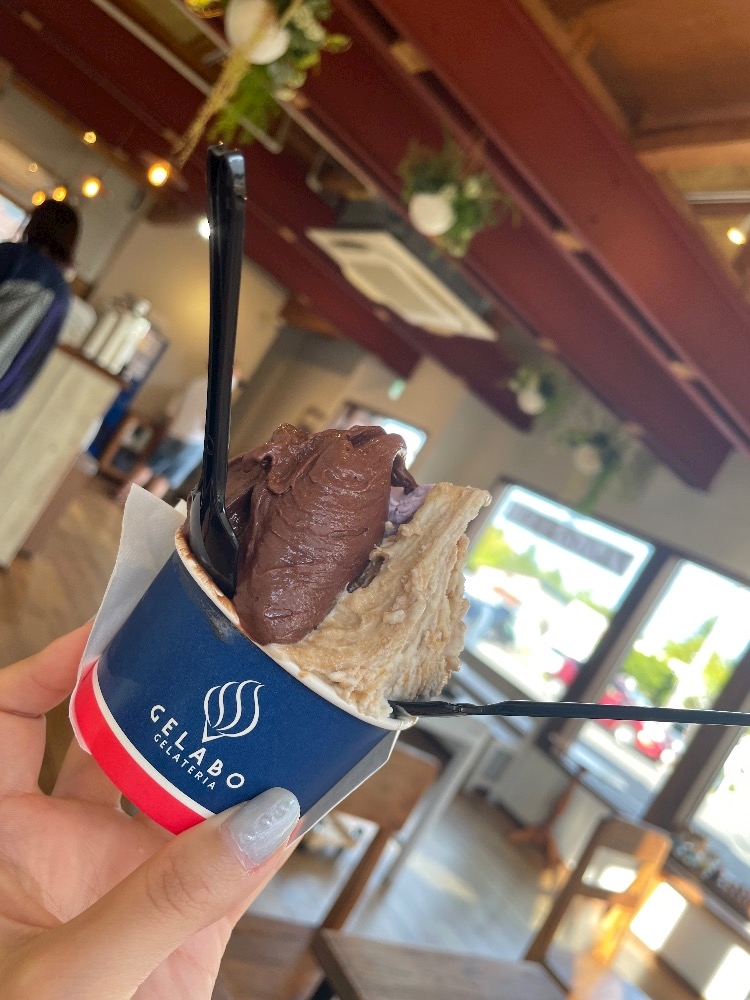 わたしが絶対食べるのはカカオ70%生チョコなんちゃら〜みたいな名前の濃厚なジェラート!🍫