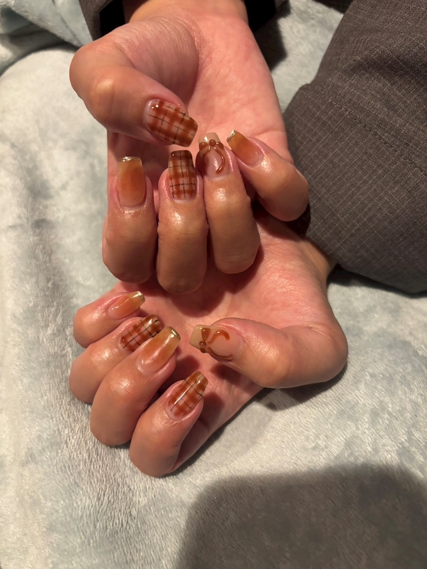 秋っぽく赤系でチェックなの♥️