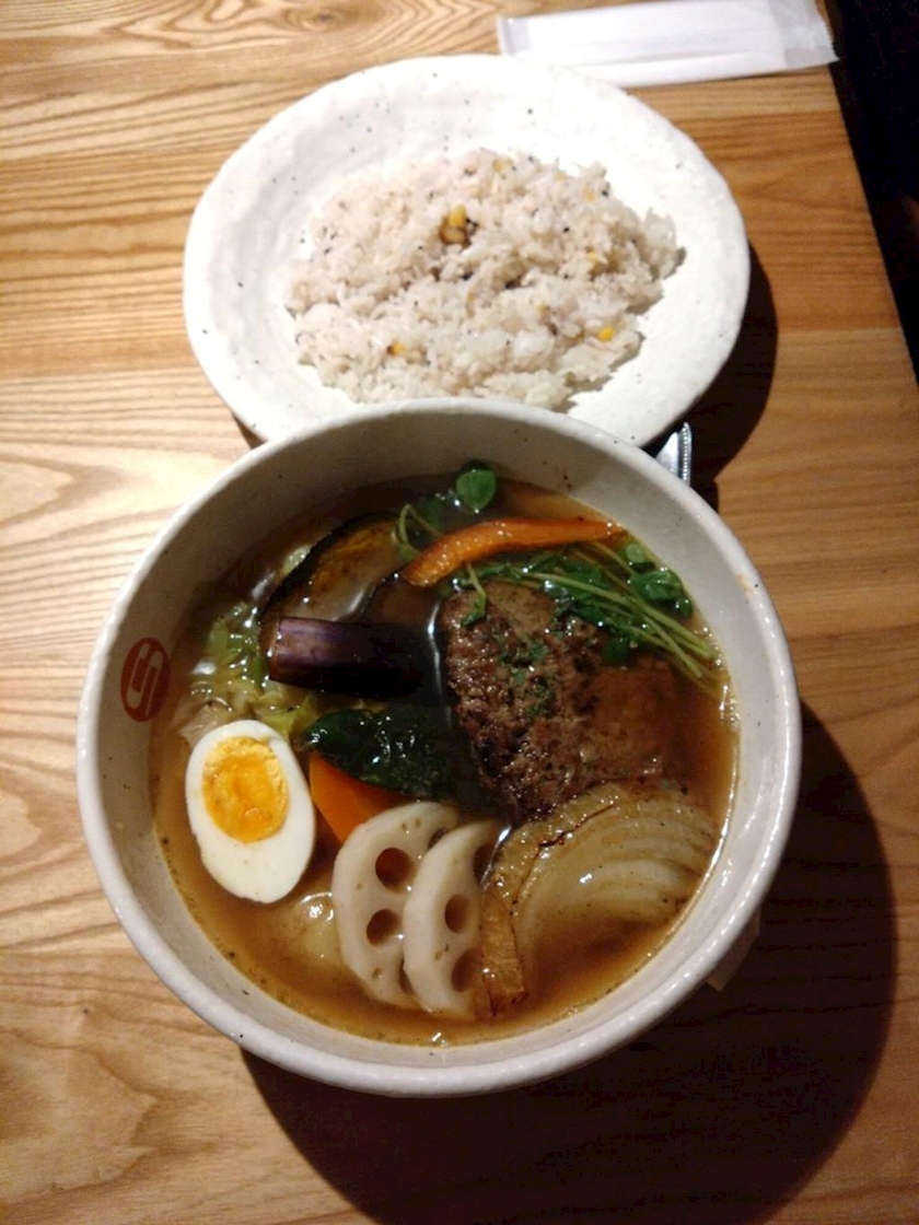 私が頼んだのは、チキン野菜🍅のスープカレーだったかなー🥒🫛🥦