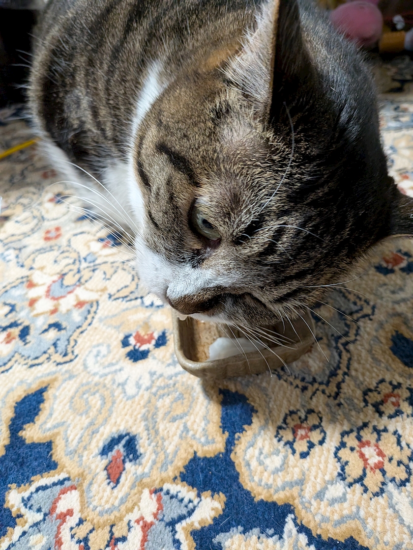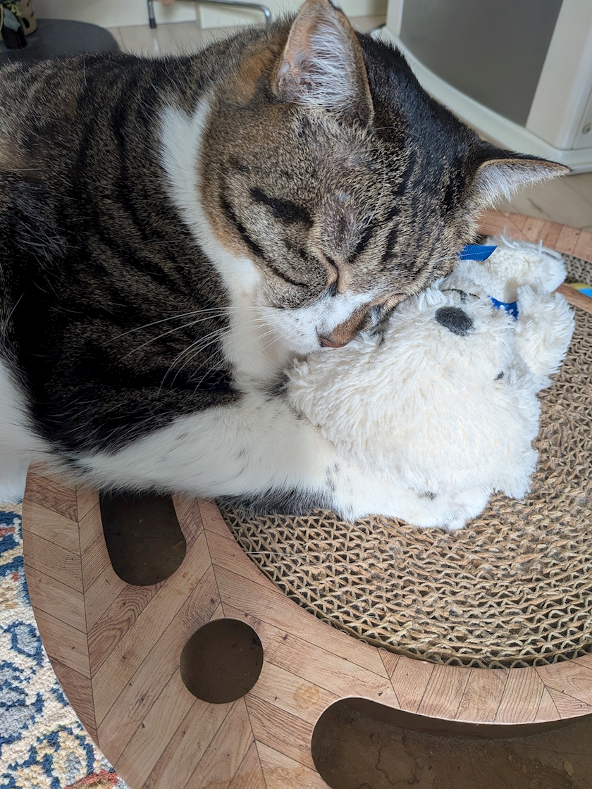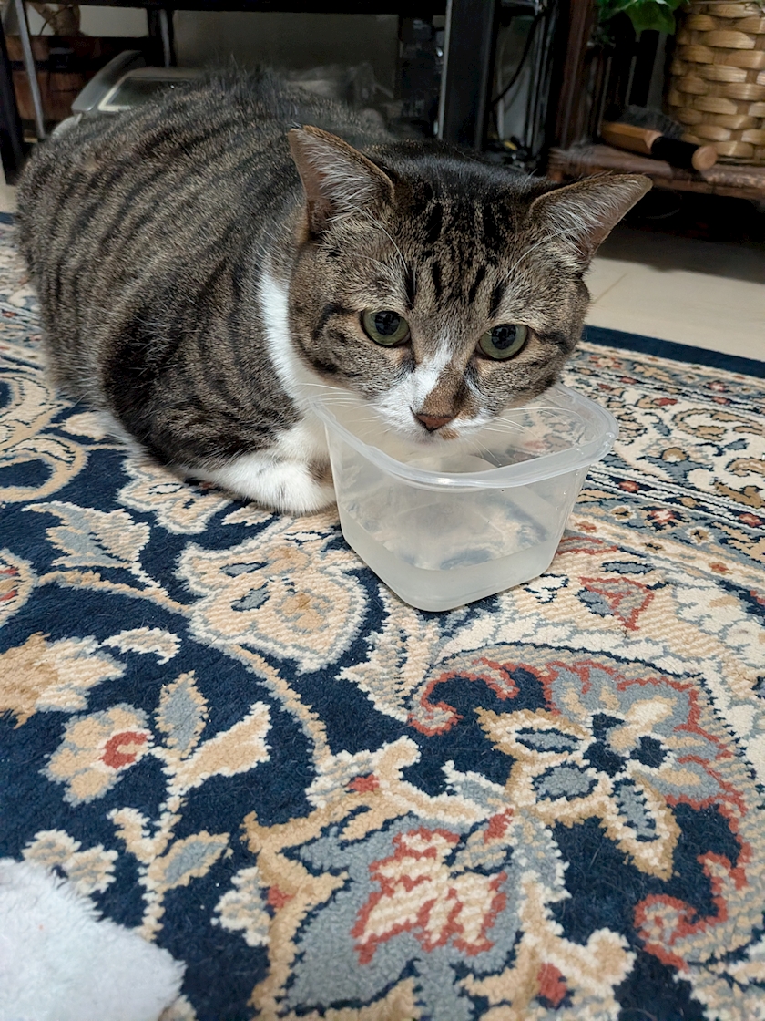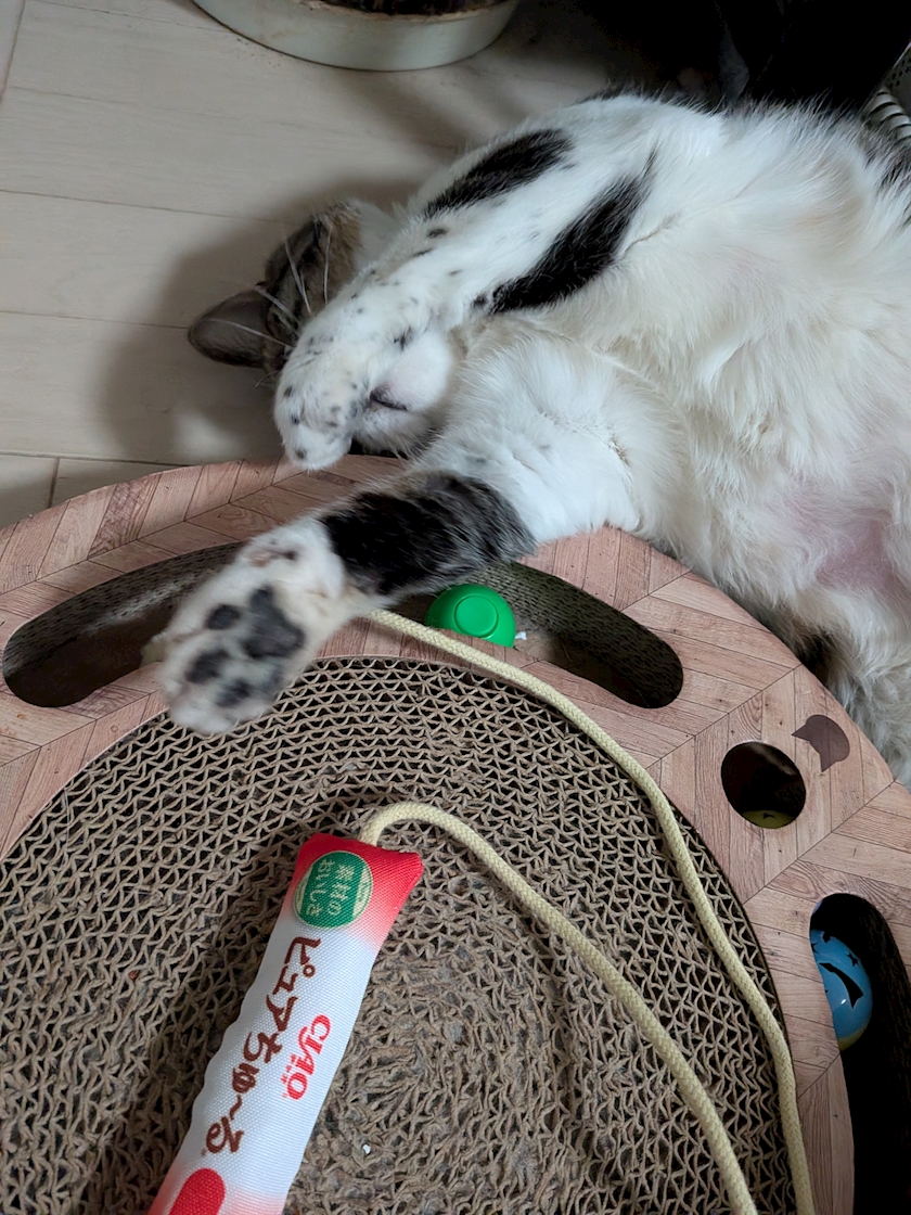 ↑ちゅーるに付いていたおもちゃが気に入ったのか、めっちゃ喜んでいて1人で遊んでいましたー😻