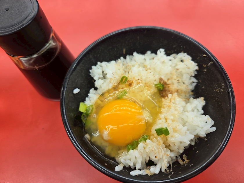 私は山岡家の卵かけご飯を食べております笑笑
