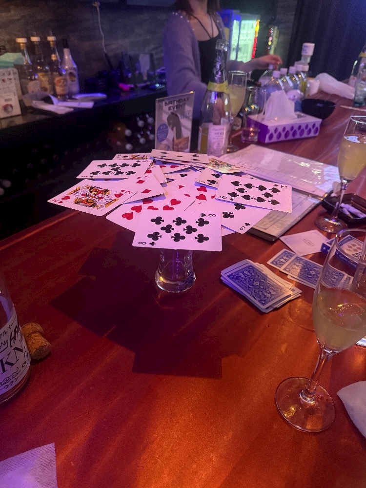 グラスの上に置いてあるトランプを崩さないように重ねていくゲーム!ただし!!