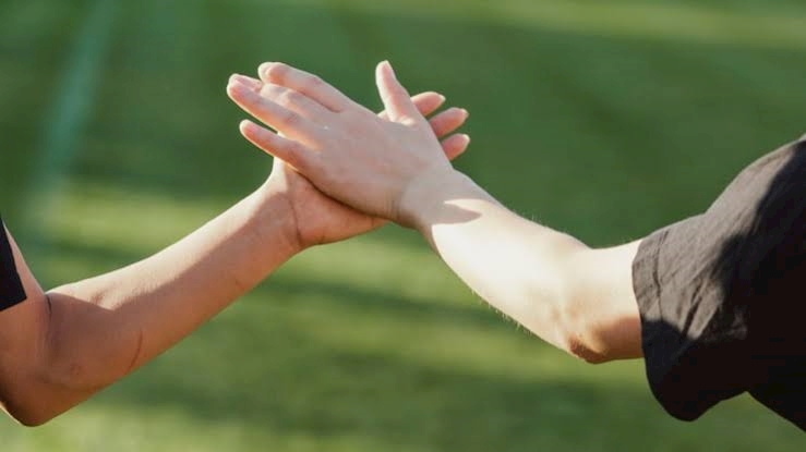 私は拳を差し出し、フィストバンプを教えた