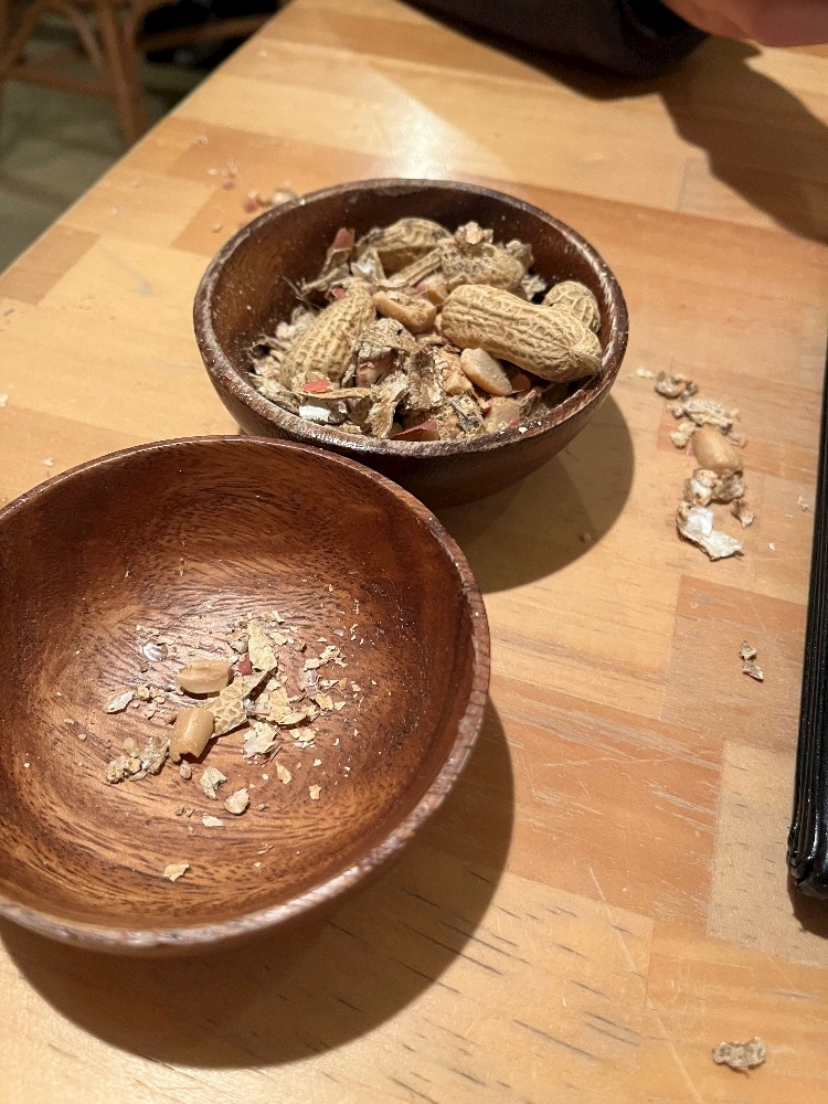 私たちは殻の残骸の中からピーナッツを探して食べるのです。