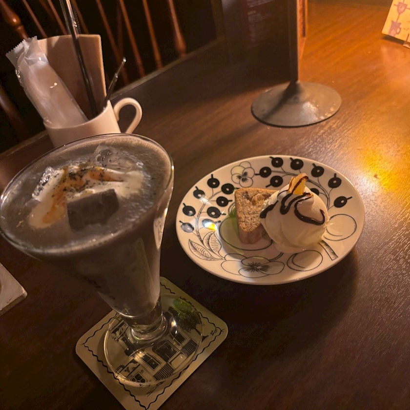 ゴマバナナキャラメル🍹と本日のケーキを食べながら、ブログ書いてのんびり🐌💭