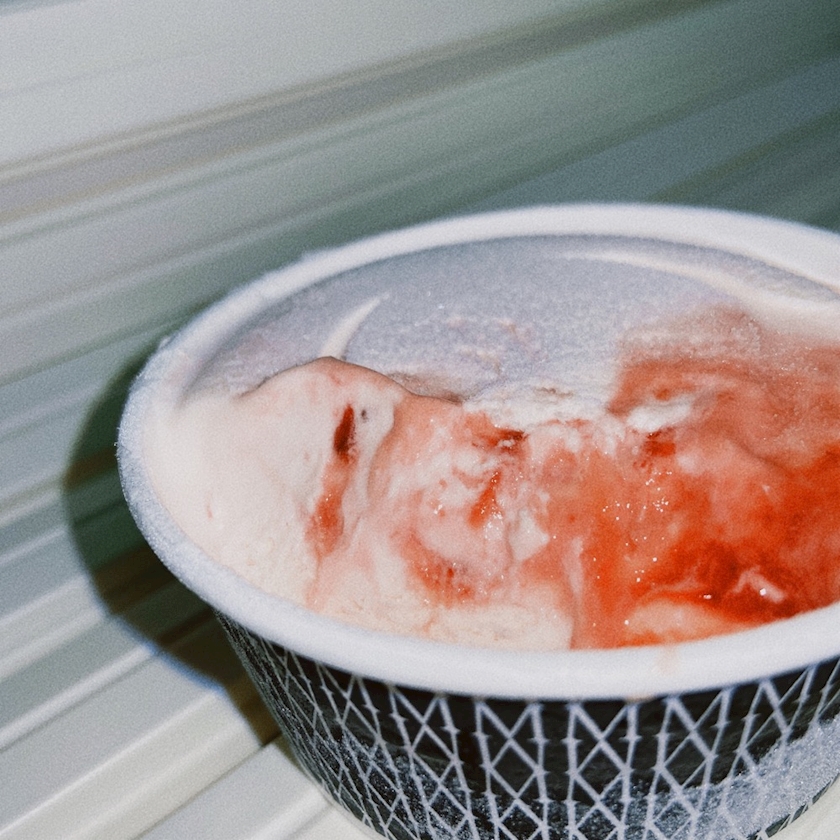 美味しそうな果肉はいってそうないちごアイスには