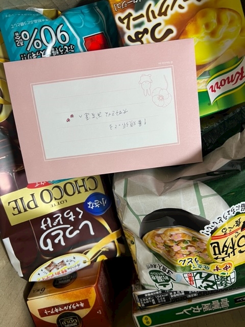 大量のお菓子とブドウ糖とビタミンCのジュースとホットアイマスクとかもダンボールに入ってたなぁ〜🍋